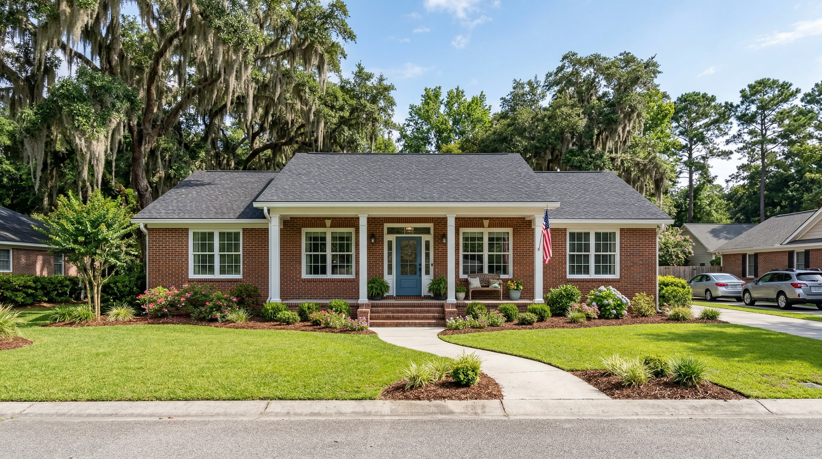 Classic and versatile — easy to clean, great ventilation, and a clean look that suits Moncks Corner's brick ranch homes and new construction alike.