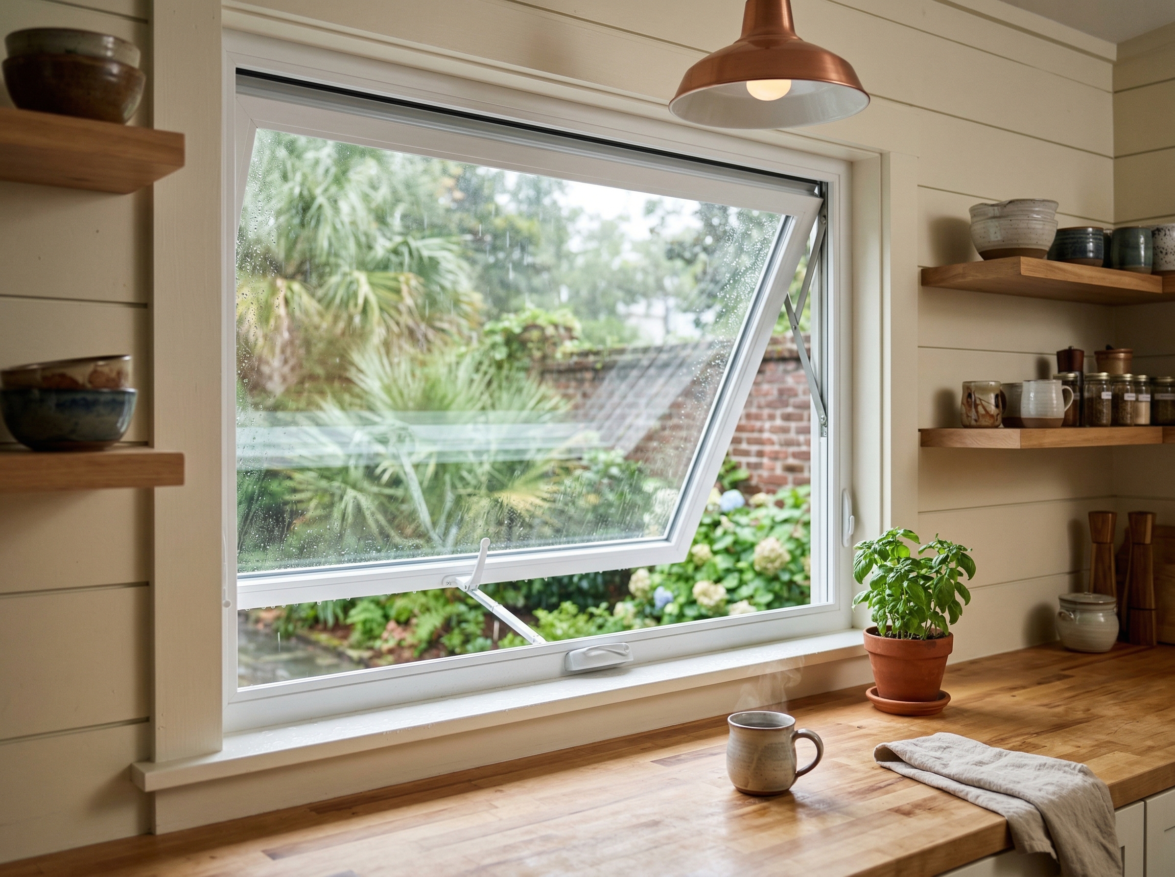 Simonton awning windows are hinged at the top and open outward from the bottom - creating a natural awning effect that lets fresh air in while keeping rain out. In the Lowcountry, where afternoon showers are common, this makes awning windows a particularly smart choice.