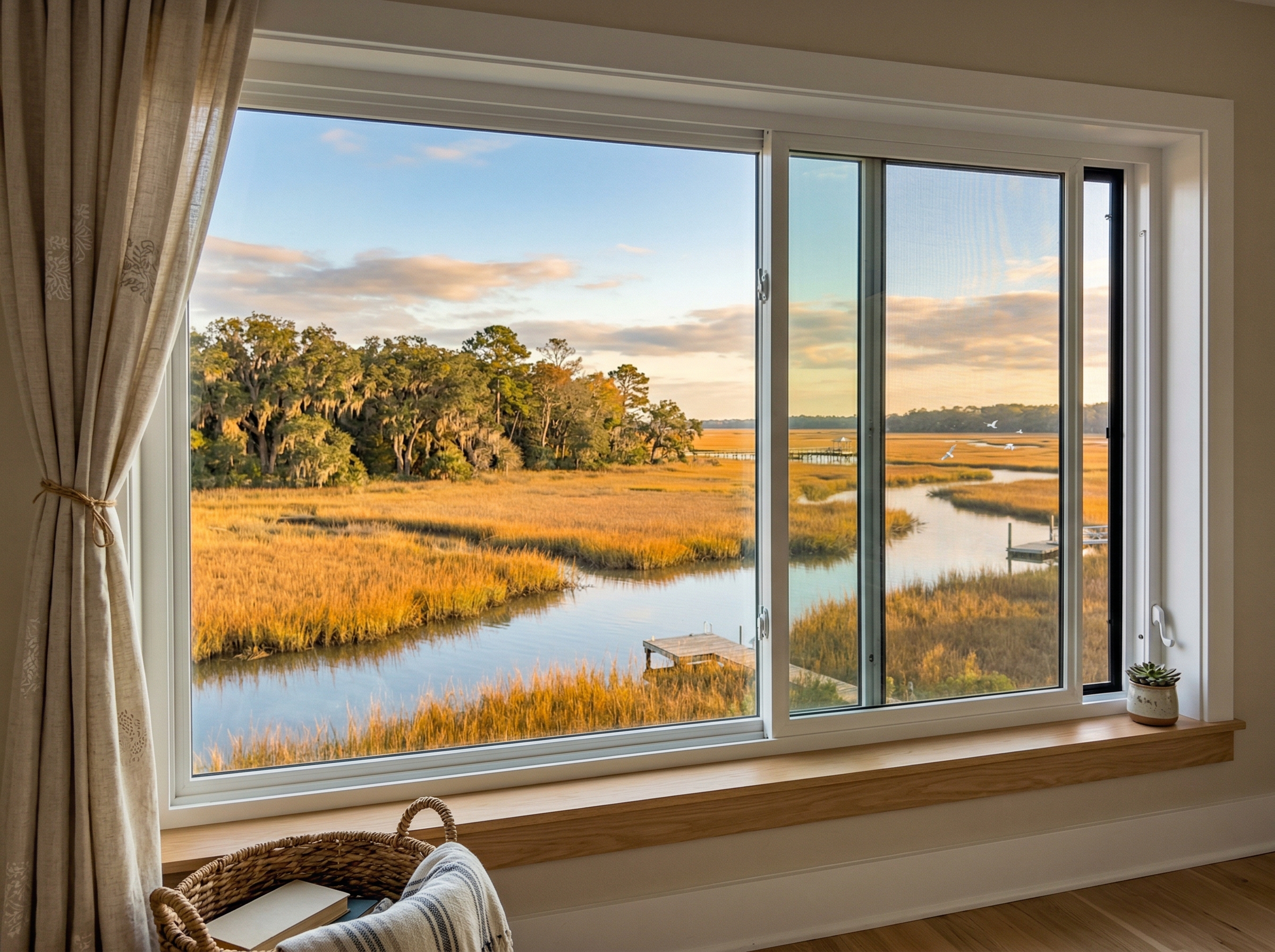 Simonton slider windows glide open horizontally on a smooth, corrosion-resistant track, offering wide, unobstructed views and a clean, contemporary aesthetic. They're an excellent choice for rooms where you want to maximize the view — whether that's a marsh, the ocean, or a beautiful Lowcountry landscape.